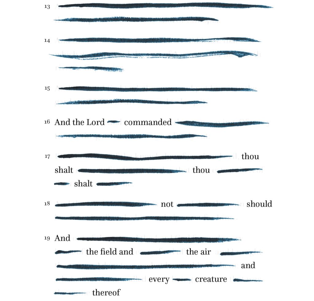 Author’s Note: These poems are excerpted from my forthcoming book, Erase Genesis. A book-length poem made by repeatedly erasing the first three chapters of Genesis, Erase Genesis reimagines our origins by presenting a new myth, a re-creation myth for climate change. Here is the story of man’s self-imposed exile from Nature, and Nature’s plan to teach him interconnectedness before it is too late. I wanted a natural element to be the agent of redaction, so these are made by hand with watercolors, making each page in the book its own primitive painting. Erase Genesis will be published in early 2026 by Project Poëtica / Bridwell Press.