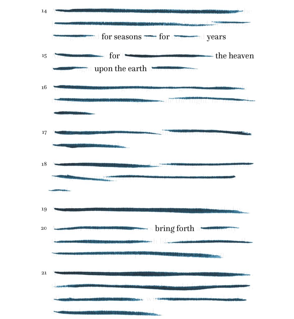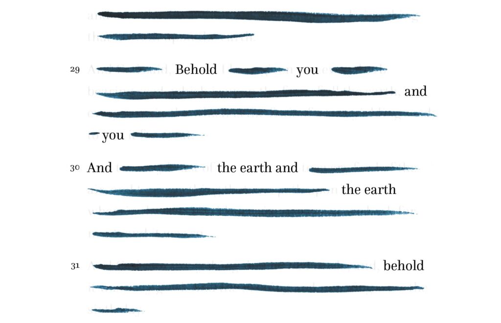 Author’s Note: These poems are excerpted from my forthcoming book, Erase Genesis. A book-length poem made by repeatedly erasing the first three chapters of Genesis, Erase Genesis reimagines our origins by presenting a new myth, a re-creation myth for climate change. Here is the story of man’s self-imposed exile from Nature, and Nature’s plan to teach him interconnectedness before it is too late. I wanted a natural element to be the agent of redaction, so these are made by hand with watercolors, making each page in the book its own primitive painting. Erase Genesis will be published in early 2026 by Project Poëtica / Bridwell Press.